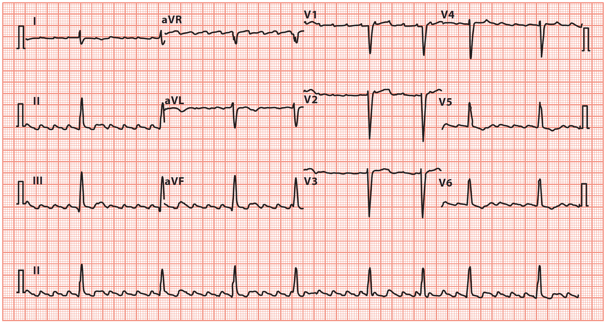 - AV block (commonly 2:1, but can be 3:1, 4:1 or variable)