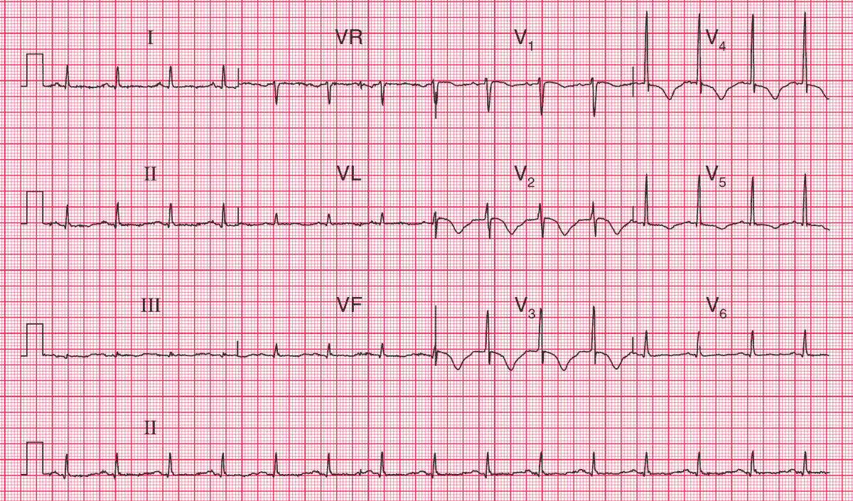 This is clearly a very abnormal ECG, with a markedly prolonged QT interval and abnormal T waves.