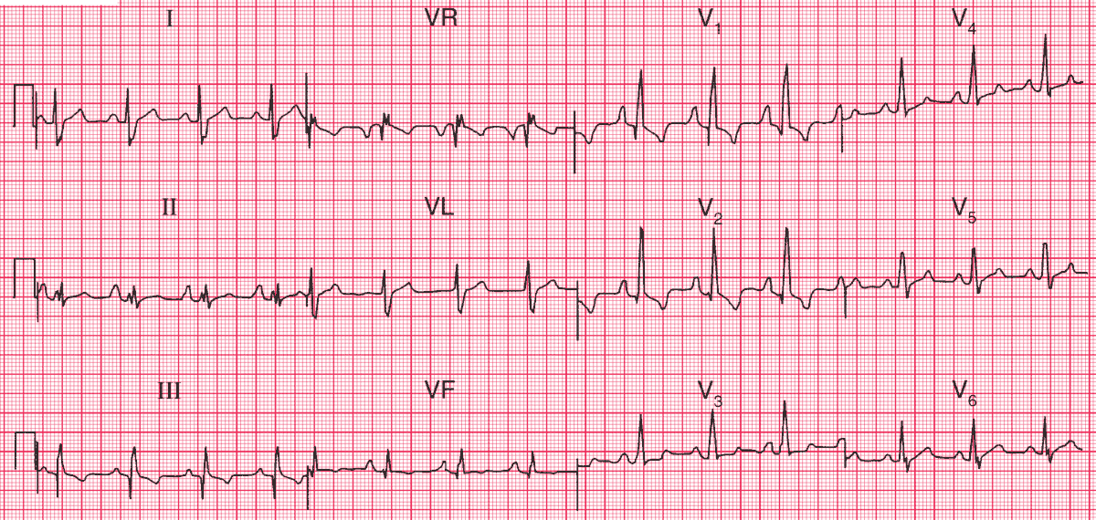 This ECG was recorded from a 17-year-old girl who was breathless, had marked ankle swelling with signs of right heart failure, and who had been known to have a heart murmur since birth. She was acyanotic.