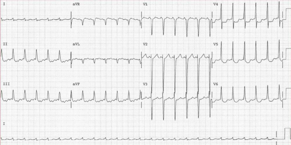 A 57-year-old woman with a long history of untreated hypertension presents to an urgent care clinic with complaints of 1 day of palpitations.