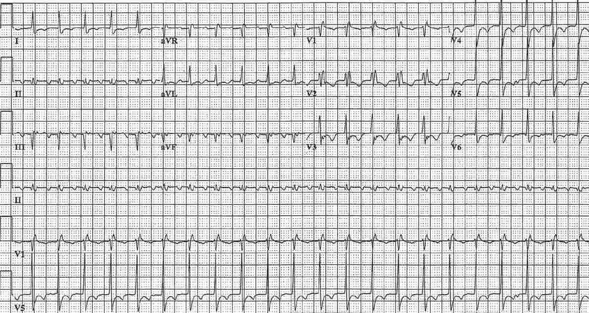 ECG Case 138 Post category:ECGs Post published:February 15, 2023 Share on Facebook Share on X (Twitter) Share on Pinterest Share on Email Share on Reddit ECG Case 138 A 14-year-old girl with known unrepaired ventricular septal defect presents with cyanosis, sudden-onset dyspnea and palpitations. What is the underlying rhythm? INTERPRETATION AND ANSWER Share on Facebook Share on X (Twitter) Share on Pinterest Share on Email Share on Reddit Read more articles Previous PostECG Case 137 Next PostECG Case 139 You Might Also Like Atrial Tachycardia with 3:2 AV Block Mobitz I Wenckebach July 22, 2021 ECG Case 23 August 23, 2021 ECG Case 79 May 13, 2022