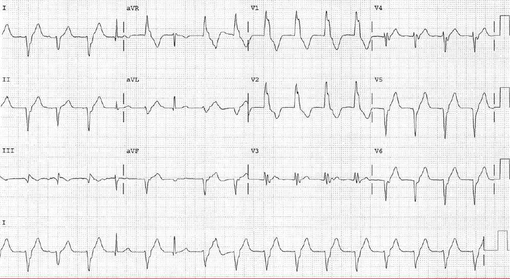 ECG Case 145 Post category:ECGs Post published:March 22, 2023 Share on Facebook Share on X (Twitter) Share on Pinterest Share on Email Share on Reddit ECG Case 145 A 56-year-old diabetic man with no known heart disease presents with near-syncope. His blood pressure is 100/60 mm Hg, and he is diaphoretic. What is the rhythm abnormality? INTERPRETATION AND ANSWER Share on Facebook Share on X (Twitter) Share on Pinterest Share on Email Share on Reddit Read more articles Previous PostECG Case 144 Next PostECG Case 146 You Might Also Like ECG Case 96 August 5, 2022 ECG Case 20 August 7, 2021 ECG Case 45 December 17, 2021