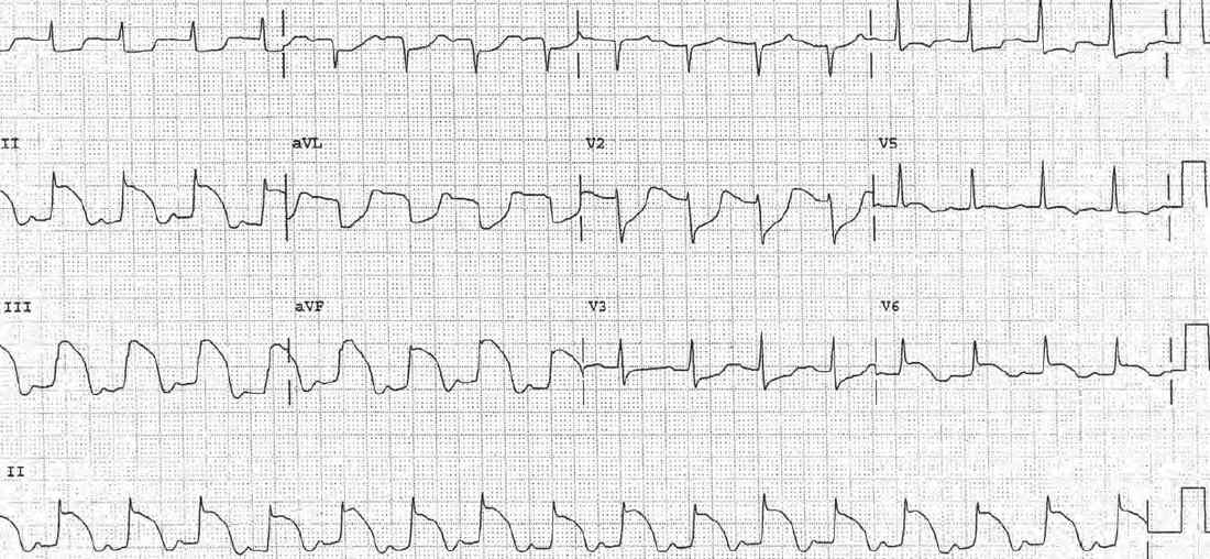 ECG Case 179 Post category:ECGs Post published:October 22, 2023 Share on Facebook Share on X (Twitter) Share on Pinterest Share on Email Share on Reddit ECG Case 179 A 57-year-old woman is awakened from sleep in the early morning with sudden-onset chest pressure. What does the ECG show? INTERPRETATION AND ANSWER Share on Facebook Share on X (Twitter) Share on Pinterest Share on Email Share on Reddit Read more articles Previous PostECG Case 178 Next PostECG Case 180 You Might Also Like Inferior MI and AVNRT or Accelerated Junctional Rhythm November 20, 2021 ECG Case 73 April 20, 2022 Inferior-Posterior STEMI and Second-degree Type I AV block (Wenckebach) January 28, 2022