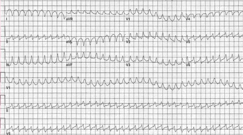 ECG Case 183 Post category:ECGs Post published:November 12, 2023 Share on Facebook Share on X (Twitter) Share on Pinterest Share on Email Share on Reddit ECG Case 183 A 54-year-old man, recently discharged after coronary artery bypass surgery, returns to the emergency department with chest pain and palpitations. What is the rhythm ? INTERPRETATION AND ANSWER Share on Facebook Share on X (Twitter) Share on Pinterest Share on Email Share on Reddit Read more articles Previous PostECG Case 182 Next PostECG Case 184 You Might Also Like ECG Case 66 March 25, 2022 Know the Differential for ST Segment Elevation: It’s More Than Just ACS October 15, 2021 ECG Case 13 June 13, 2021
