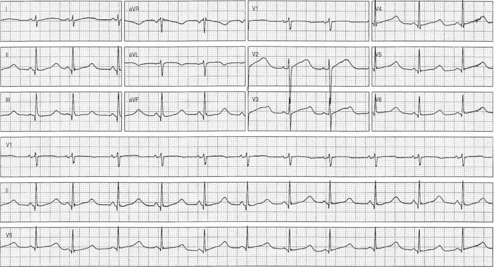 ECG Case 202 Post category:ECGs Post published:March 14, 2024 Share on Facebook Share on X (Twitter) Share on Pinterest Share on Email Share on Reddit ECG Case 202 This ECG is from a 40-year-old male who presented following a large overdose of an anti-spasmodic agent. What do you see on this ECG and what is he at risk of developing ? INTERPRETATION AND ANSWER Share on Facebook Share on X (Twitter) Share on Pinterest Share on Email Share on Reddit Read more articles Previous PostECG Case 201 Next PostECG Case 203 You Might Also Like ECG Case 64 March 16, 2022 Atrial Flutter with 3:2 and 2:1 Conduction August 23, 2021 Atrial Fibrillation with Digoxin Effect December 17, 2021
