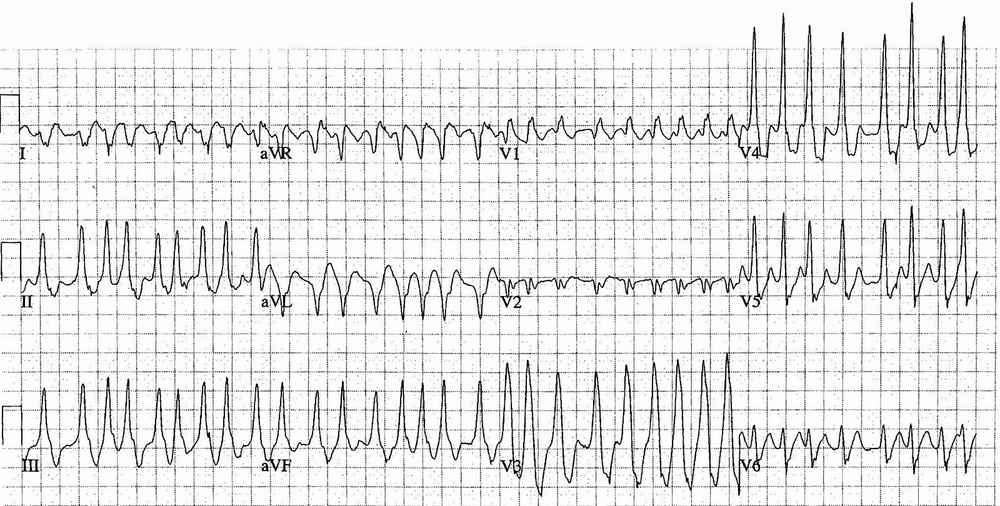 This ECG is from a 35-year-old male who presented to the Emergency Department complaining of palpitations, dyspnea, and light-headedness for the preceding hour. He has no known past medical history. Vital signs: BP 115/65, RR 20, Sats 98% RA, T 36.6