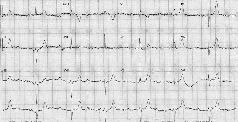 ECG Case 243 Post category:ECGs Post published:November 6, 2024 Share on Facebook Share on X (Twitter) Share on Pinterest Share on Email Share on Reddit ECG Case 243 This ECG is from an 89-year-old female who presented with a week’s history of feeling generally unwell and episodic pre-syncope over the prior 24 hours. Vital signs: BP 168/67; GCS 15; Sats 96% RA; Temp 36.4 C (97.5 F). What does the ECG show ? INTERPRETATION AND ANSWER Share on Facebook Share on X (Twitter) Share on Pinterest Share on Email Share on Reddit Read more articles Previous PostECG Case 242 Next PostECG Case 244 You Might Also Like ECG Case 91 July 17, 2022 ECG Case 82 May 24, 2022 Inferior-Posterior STEMI and Second-degree Type I AV block (Wenckebach) January 28, 2022