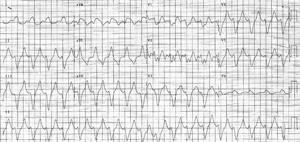 ECG Case 246 Post category:ECGs Post published:November 27, 2024 Share on Facebook Share on X (Twitter) Share on Pinterest Share on Email Share on Reddit This ECG is from a 23-year-old female. She presented to the Emergency Department feeling generally unwell. She is a known Type 1 Diabetic. ECG Case 246 What are the key ECG features ? What is the likely cause ? INTERPRETATION AND ANSWER Share on Facebook Share on X (Twitter) Share on Pinterest Share on Email Share on Reddit Read more articles Previous PostECG Case 245 Next PostECG Case 247 You Might Also Like ECG Case 59 February 13, 2022 ECG Case 105 September 12, 2022 WPW Syndrome in 14-year-old boy October 13, 2021