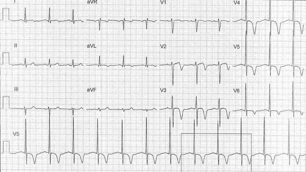 ECG Case 248 Post category:ECGs Post published:December 10, 2024 Share on Facebook Share on X (Twitter) Share on Pinterest Share on Email Share on Reddit ECG Case 248 This ECG is form a 40-year-old male who presented with a history of chest pain. He was pain-free on arrival to the Emergency Department, his initial pain-free ECG shown above. What is your interpretation ? INTERPRETATION AND ANSWER Share on Facebook Share on X (Twitter) Share on Pinterest Share on Email Share on Reddit Read more articles Previous PostECG Case 247 Next PostECG Case 249 You Might Also Like ECG Case 69 March 28, 2022 ECG Case 67: Ectopic atrial rhythm March 25, 2022 ECG Case 82: Acute Antero-Lateral STEMI and Left Anterior Fascicular Block (LAFB) May 24, 2022