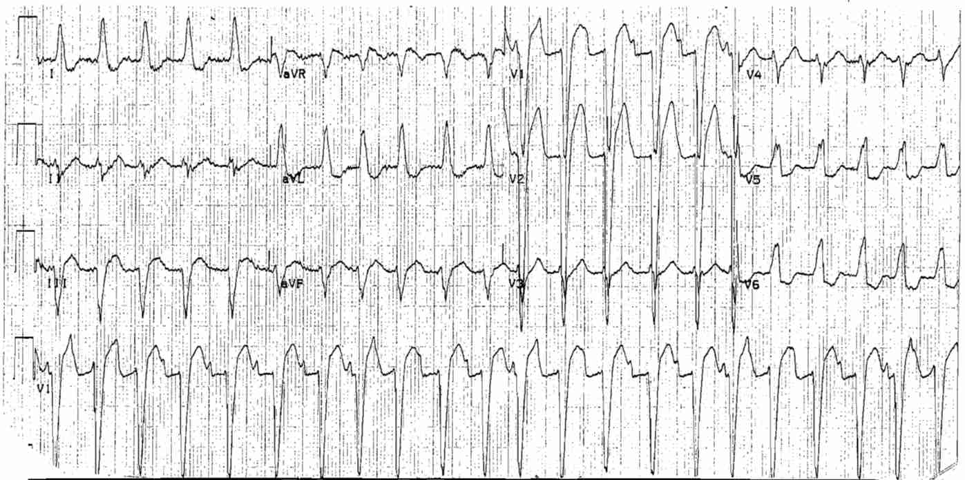 ECG Case 26 Post category:ECGs Post published:September 9, 2021 Share on Facebook Share on X (Twitter) Share on Pinterest Share on Email Share on Reddit 82 Years old man with palpitations. What’s the rhythm ? INTERPRETATION AND ANSWER Share on Facebook Share on X (Twitter) Share on Pinterest Share on Email Share on Reddit Read more articles Previous PostECG Case 25 Next PostECG Case 27 You Might Also Like ECG Case 50 January 4, 2022 ECG Case 27 September 11, 2021 ECG Case 56: Left Ventricular Hypertrophy (LVH) from Aortic Stenosis January 27, 2022