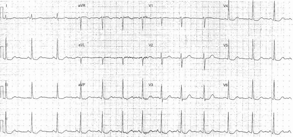 ECG Case 270 Post category:ECGs Post published:April 26, 2025 Share on Facebook Share on X (Twitter) Share on Pinterest Share on Email Share on Reddit ECG Case 270 This ECG is from a 27-year-old female who presents with weakness and lethargy. What’s your interpretation ? INTERPRETATION AND ANSWER Share on Facebook Share on X (Twitter) Share on Pinterest Share on Email Share on Reddit Read more articles Previous PostECG Case 269 Next PostECG Case 271 You Might Also Like ECG Case 85: Posterior MI and Atrial Fibrillation June 7, 2022 ECG Case 26 September 9, 2021 ECG Case 39 November 20, 2021