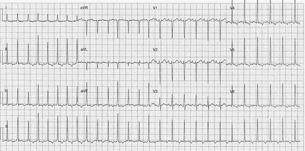 ECG Case 272 Post category:ECGs Post published:May 9, 2025 Share on Facebook Share on X (Twitter) Share on Pinterest Share on Email Share on Reddit The following ECG is from a 17-year-old male who presented with palpitations for the last hour. He is normal fit and well. He denies taking any medications or drugs. ECG Case 272 What’s the most likely rhythm ? INTERPRETATION AND ANSWER Share on Facebook Share on X (Twitter) Share on Pinterest Share on Email Share on Reddit Read more articles Previous PostECG Case 271 Next PostECG Case 273 You Might Also Like ECG Case 32 October 13, 2021 ECG Case 90 July 16, 2022 Atrial Flutter with 1:1 conduction then 2:1 conduction November 1, 2021