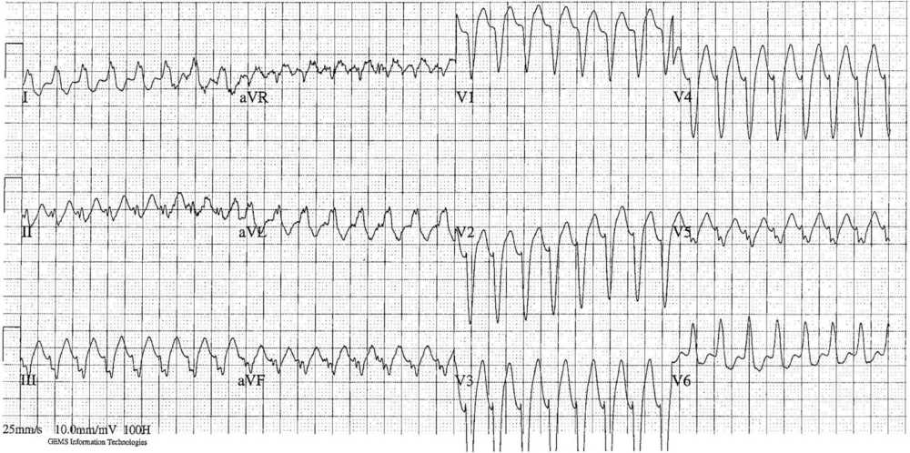 ECG Case 274 Post category:ECGs Post published:May 18, 2025 Share on Facebook Share on X (Twitter) Share on Pinterest Share on Email Share on Reddit ECG Case 274 The ECG is from a 66-year-old female who presented to the Emergency Department complaining of palpitations. Her BP, RR, Sats were normal. What’s your interpretation ? INTERPRETATION AND ANSWER Share on Facebook Share on X (Twitter) Share on Pinterest Share on Email Share on Reddit Read more articles Previous PostECG Case 273 Next PostECG Case 275 You Might Also Like ECG Case 52 January 8, 2022 Third-degree AV Block then Second-degree AV block July 31, 2021 ECG Case 89 July 6, 2022