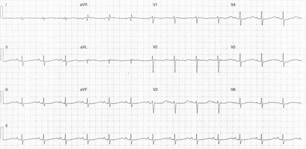 ECG Case 285 Post category:ECGs Post published:August 3, 2025 Share on Facebook Share on X (Twitter) Share on Pinterest Share on Email Share on Reddit The following ECG is from a 34-year-old female who presented to the Emergency Department complaining of progressive weakness. She has known Gitelman syndrome and recently had several medications changed. ECG Case 285 What’s your interpretation ? INTERPRETATION AND ANSWER Share on Facebook Share on X (Twitter) Share on Pinterest Share on Email Share on Reddit Read more articles Previous PostECG Case 284 Next PostECG Case 286 You Might Also Like ECG Case 6 April 30, 2021 ECG Case 83 June 3, 2022 ECG Case 41 November 28, 2021
