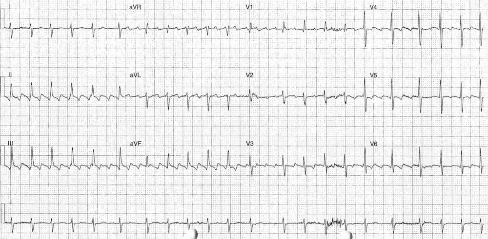 ECG Case 291 Post category:ECGs Post published:September 5, 2025 Share on Facebook Share on X (Twitter) Share on Pinterest Share on Email Share on Reddit ECG Case 291 The following ECG is from an 82-year-old male with a history of severe pulmonary hypertension. He presents with worsening shortness of breath and hypoxemia. What’s the rhythm ? INTERPRETATION AND ANSWER Share on Facebook Share on X (Twitter) Share on Pinterest Share on Email Share on Reddit Read more articles Previous PostECG Case 290 Next PostECG Case 292 You Might Also Like ECG Case 93: Sick Sinus Syndrome July 24, 2022 First, Second and Third Degree AV Block in the Same Patient August 11, 2021 ECG Case 34 October 24, 2021