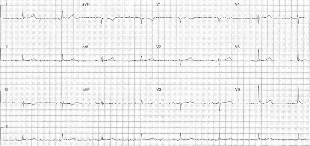 The ECG is from a 61-year-old male who presented with confusion after being found collapsed on the floor. His past medical history includes gout and Parkinson’s disease. He was unable to provide details of his current medications.