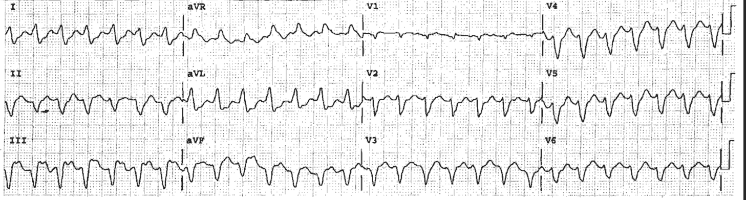 ECG Case 40 Post category:ECGs Post published:November 26, 2021 Share on Facebook Share on X (Twitter) Share on Pinterest Share on Email Share on Reddit Is this Wide QRS Tachycardia SVT with aberrancy or VT ? CLICK HERE FOR INTERPRETATION AND ANSWER Share on Facebook Share on X (Twitter) Share on Pinterest Share on Email Share on Reddit Read more articles Previous PostECG Case 39 Next PostECG Case 41 You Might Also Like ECG Case 22 August 14, 2021 ECG Case 25 September 5, 2021 ECG Case 72 April 18, 2022
