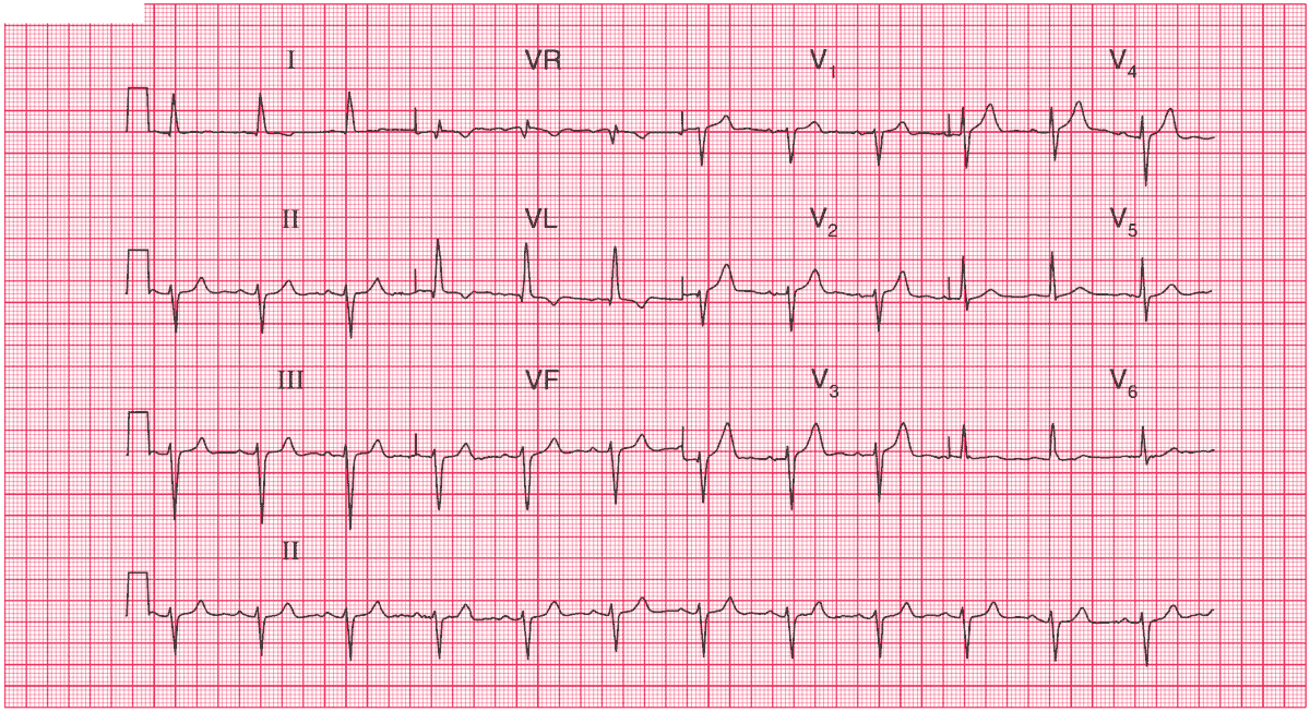 A 70-year-old man had had high blood pressure for many years, but it was now well controlled at 140/85. He had no symptoms, and no abnormalities were detected on physical examination. This ECG was recorded during a routine follow-up appointment.