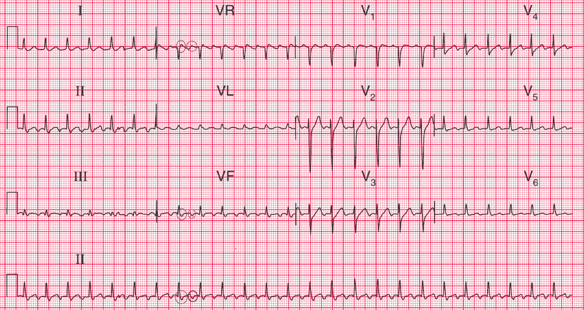 - Normal QRS complexes, ST segments and T waves