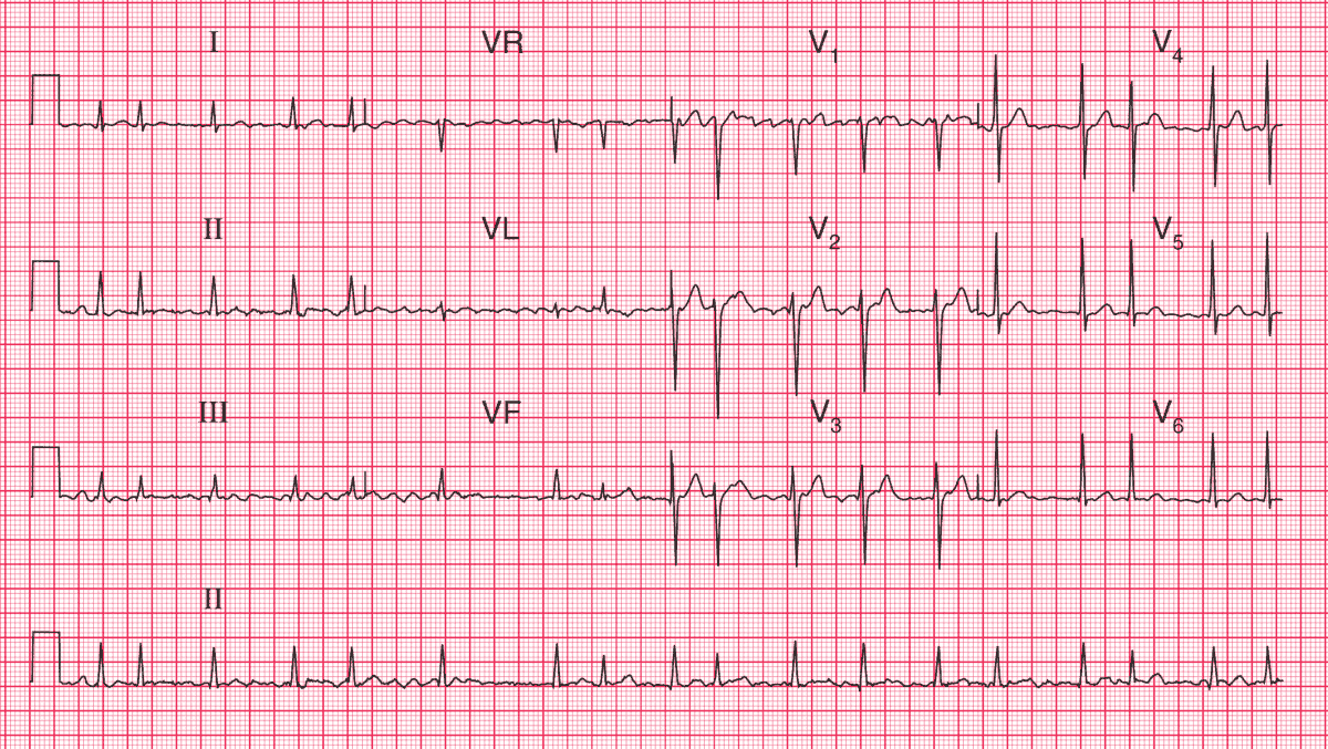 A 70-year-old woman, from whom this ECG was recorded, was admitted to hospital with increasing congestive cardiac failure.