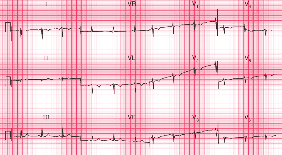 ECG Case 68 Post category:ECGs Post published:March 28, 2022 Share on Facebook Share on X (Twitter) Share on Pinterest Share on Email Share on Reddit ECG Case 68 This ECG was recorded from a healthy 25-year-old man during a routine medical examination. Any comments? CLICK FOR INTERPRETATION AND ANSWER Share on Facebook Share on X (Twitter) Share on Pinterest Share on Email Share on Reddit Read more articles Previous PostECG Case 67 Next PostECG Case 69 You Might Also Like ECG Case 69: Atrial Fibrillation and Digoxin Effect March 28, 2022 ECG Case 48 December 24, 2021 ECG Case 27 September 11, 2021