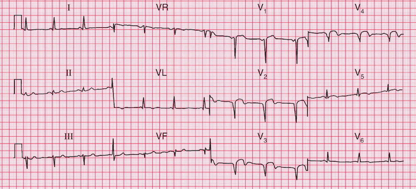 Examination revealed a raised jugular venous pressure, basal crackles in the lungs and a third sound at the cardiac apex.
