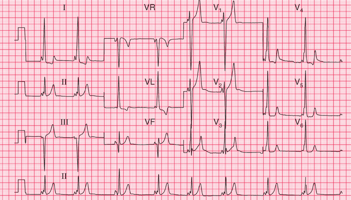 - A few normal complexes, but the majority are wide and have a slurred upstroke