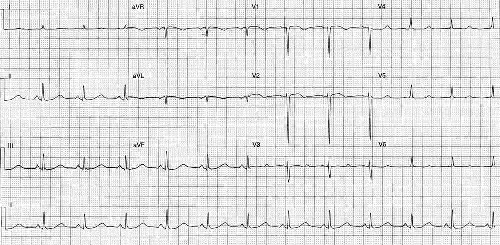 - Significantly reduced ST elevation and QRS voltage when compared with 1st ECG