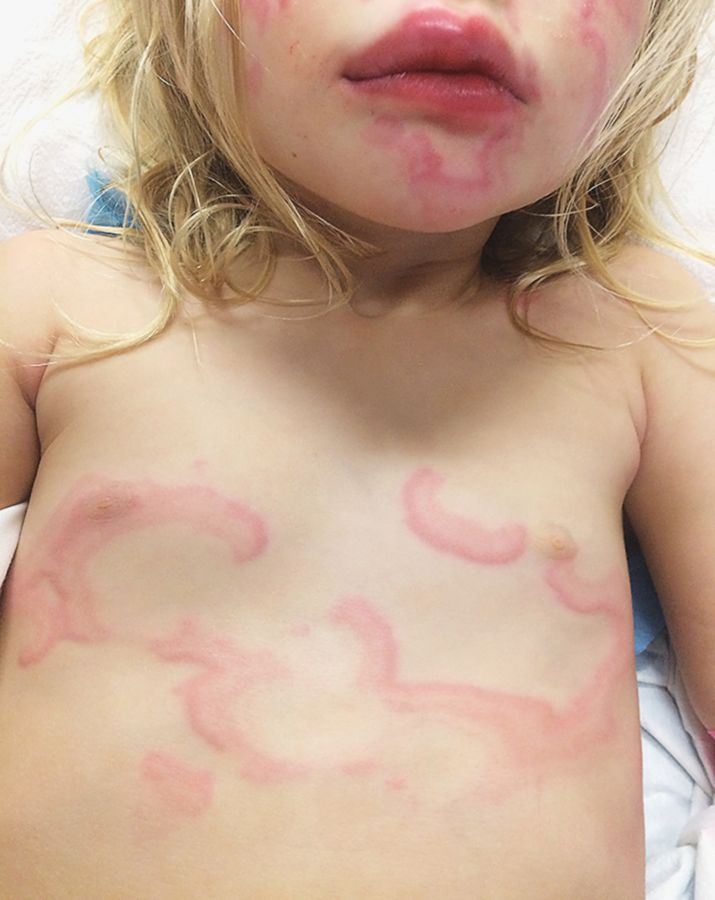 3-year-old Girl with Pruritic Blanching Rash Post category:Spot Diagnosis Post published:June 7, 2022 Share on Facebook Share on X (Twitter) Share on Pinterest Share on Email Share on Reddit 3-year-old Girl with Pruritic Blanching Rash What is the diagnosis in this 3-year-old girl with recent upper respiratory infection and new pruritic blanching rash? CLICK FOR FULL CASE AND ANSWER Share on Facebook Share on X (Twitter) Share on Pinterest Share on Email Share on Reddit Read more articles Previous PostA 41-year-old Woman with Subcutaneous Hard Lumps on her Buttocks and Elbows Next PostInfant with Nonbilious Vomiting and Lack of Stools You Might Also Like A 60-year-old Woman With Pain in the Upper Abdomen November 14, 2021 A Diagonal Crease in Each Earlobe September 7, 2021 Patient with History of Esophageal Stenosis due to Chemical Burn April 14, 2022