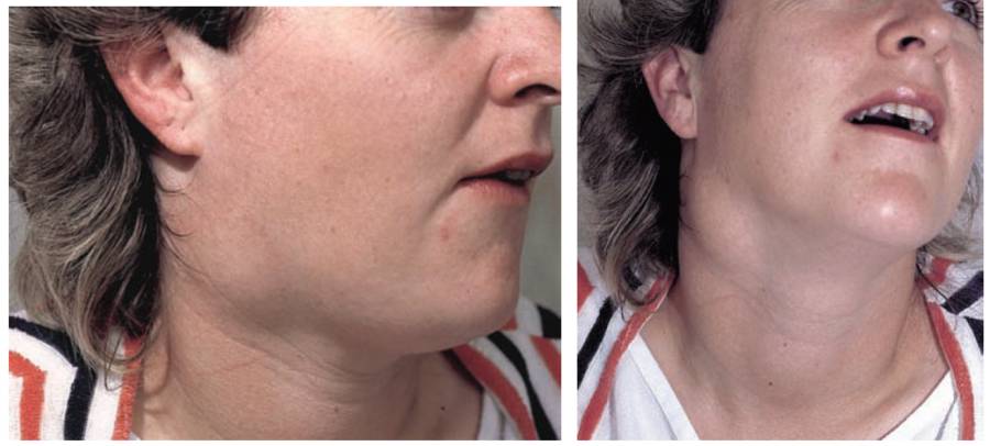 The fluid is thick, turbid, yellowish white and looks just like pus. However, under the microscope, it is seen to contain typical cholesterol crystals. This woman’s cyst was indeed aspirated in the clinic, to confirm the diagnosis.