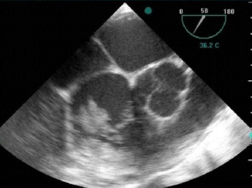 The patient subsequently underwent heart echocardiography (both transthoracic and transoesophageal) where vegetations were found in the tricuspid valve (Fig. 1). Otherwise, the heart function was normal.