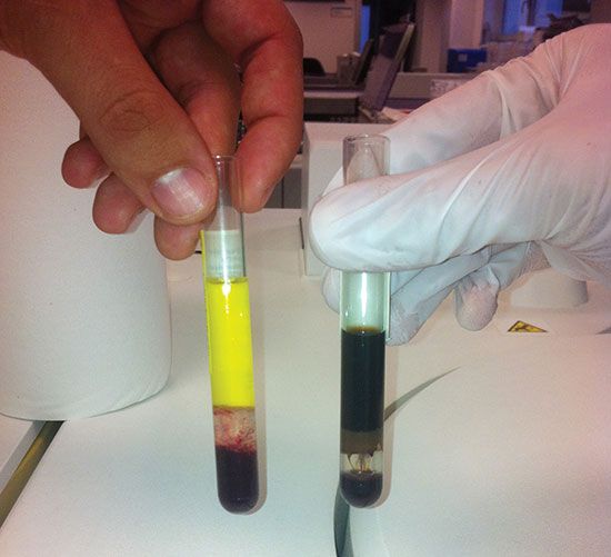 A 53-year-old man presented with desaturation, cyanosis, and dark brown serum.