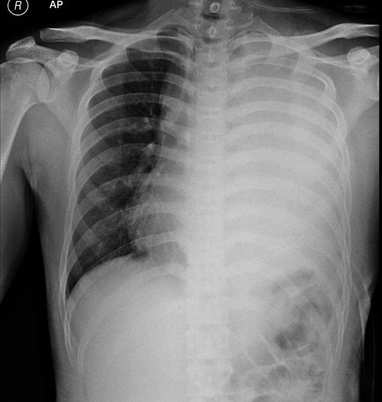 A 15-year-old male patient presented with a 3-months history of shortness of breath, decreased appetite, fatigue and fever. A chest radiograph revealed a massive left-sided pleural effusion. A chest tube was placed on the left hemithorax and the patient was sent to a referral centre.
