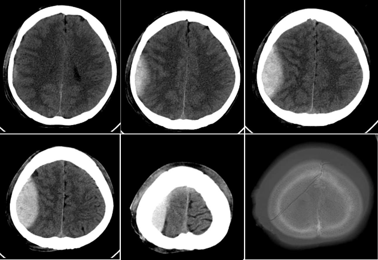 Head CT scan of a patient complaining of headache after motor vehicle accident