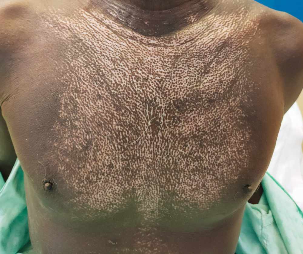 Hypopigmentation and Hyperpigmentation on Sclerotic Skin Post category:Spot Diagnosis Post published:August 13, 2023 Share on Facebook Share on X (Twitter) Share on Pinterest Share on Email Share on Reddit Hypopigmentation and Hyperpigmentation on Sclerotic Skin Examination of a 68-year-old man with interstitial lung disease was notable for skin changes characterized by alternating areas of hypopigmentation and hyperpigmentation on sclerotic skin. What is the most likely diagnosis? FULL CASE AND ANSWER Share on Facebook Share on X (Twitter) Share on Pinterest Share on Email Share on Reddit Read more articles Previous PostHeadache after Motor Vehicle Accident Next Post23-Year-Old Man Involved in Motor Vehicle Accident You Might Also Like Pain and Swelling of the Left Thigh and Lower Leg September 4, 2022 Woman with Dermatomyositis and Subcutaneous Nodules on the Arms and Legs May 13, 2022 Spoon-Shaped Nails July 1, 2021