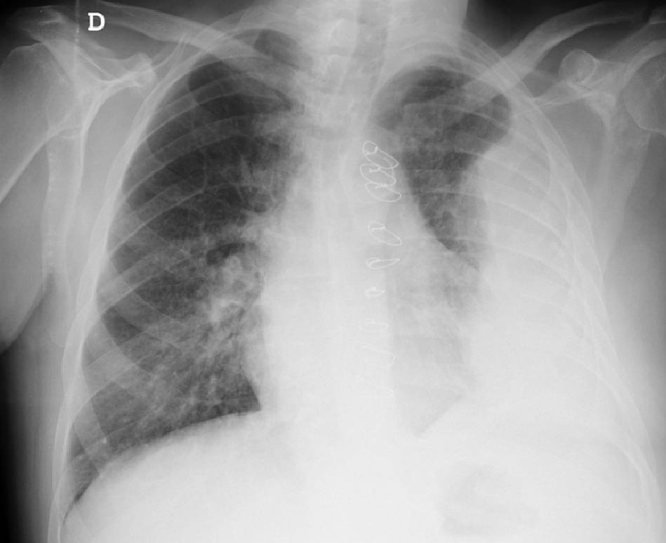 There was no fever, chills or cough. The patient had a clinical history of pulmonary tuberculosis 50 years before.