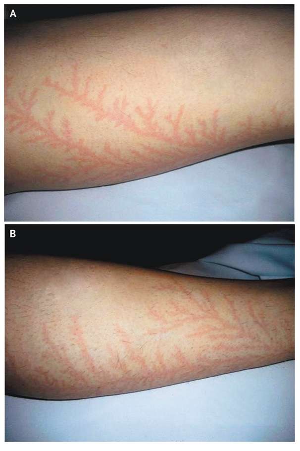 Painless Erythematous Cutaneous Marks in a Fern-Leaf Pattern Post category:Spot Diagnosis Post published:October 22, 2021 Share on Facebook Share on X (Twitter) Share on Pinterest Share on Email Share on Reddit Painless Erythematous Cutaneous Marks in a Fern-Leaf Pattern Painless erythematous cutaneous marks in a fern-leaf pattern on the inner sides of both legs. What is the diagnosis? CLICK HERE FOR FULL CASE AND ANSWER Share on Facebook Share on X (Twitter) Share on Pinterest Share on Email Share on Reddit Read more articles Previous PostPatient with Acute Onset of Right Flank Pain Next PostChest Pain in a 37-year-old man You Might Also Like Erythematous and Tender Abdominal Lesion April 19, 2022 Unilateral Leg Swelling and Bluish Discoloration May 10, 2021 26 Year Old Woman with Painless Nodular Skin Lesions October 12, 2021
