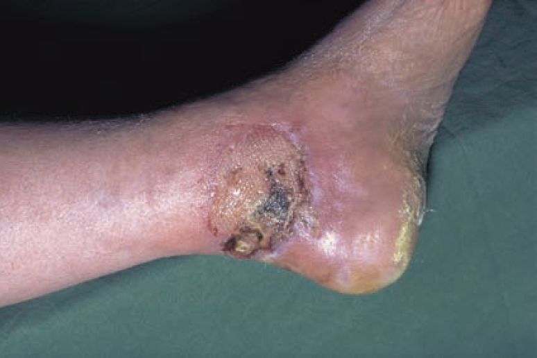 This 69-year-old lady has had her ulcer of the left leg treated for many months by the district nurse using conventional bandaging. As it showed no signs of healing – indeed, if anything it seemed to be getting worse – she was referred to the vascular clinic at her local hospital. Here she gave a history of left calf pain on walking.