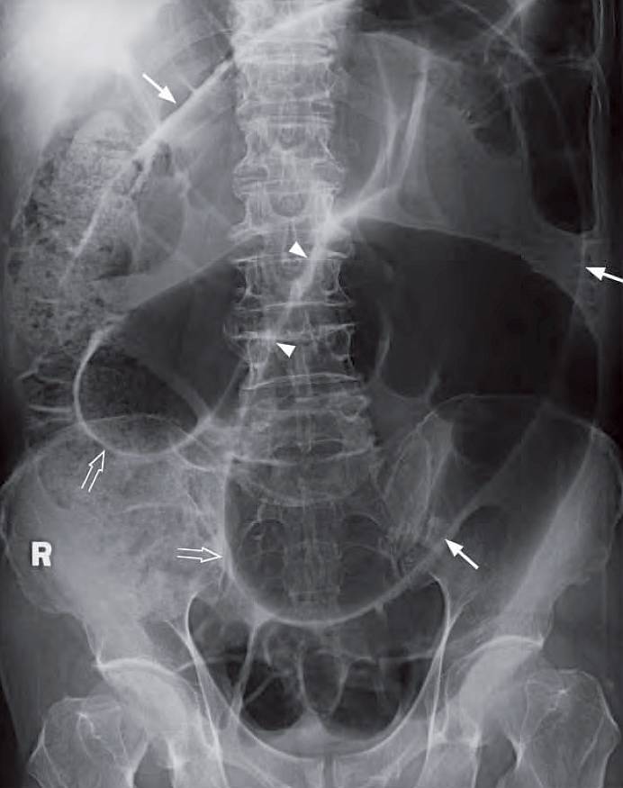 An 86-year-old woman complained of sudden onset severe colicky lower abdominal pain for 4 hours. This was associated with vomiting and constipation.