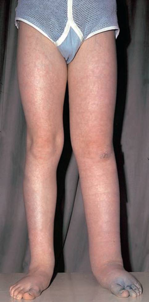 This image is from a 21-year-old shop assistant. Her legs have been swollen since she was 14 years old and have slowly become slightly worse, although entirely painless, until they have reached their present size.