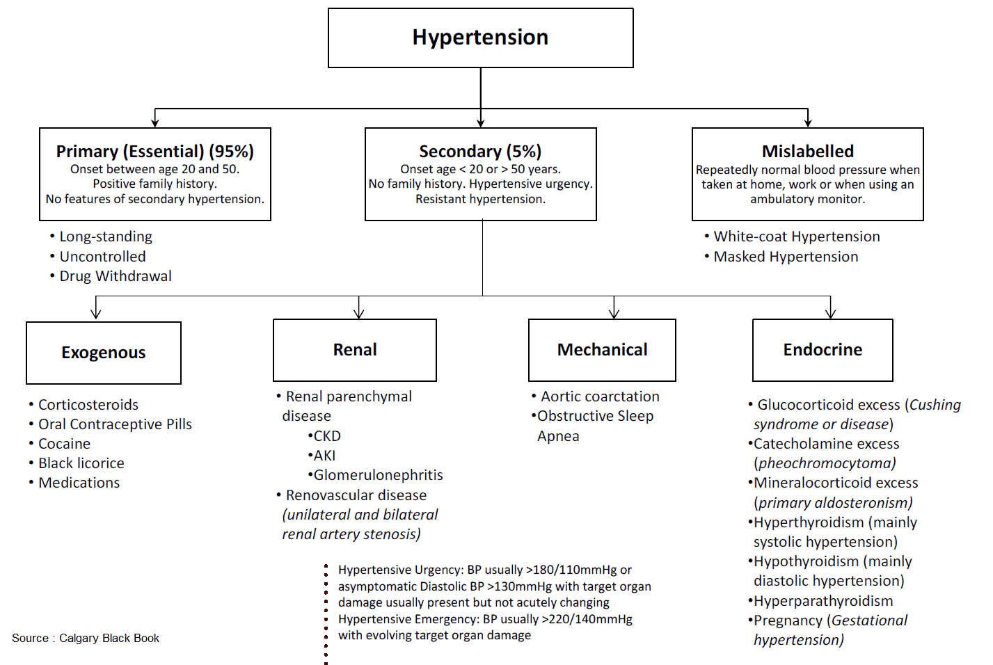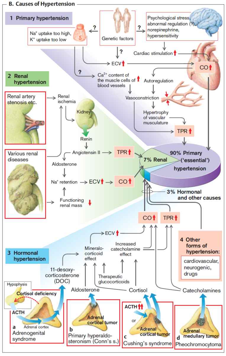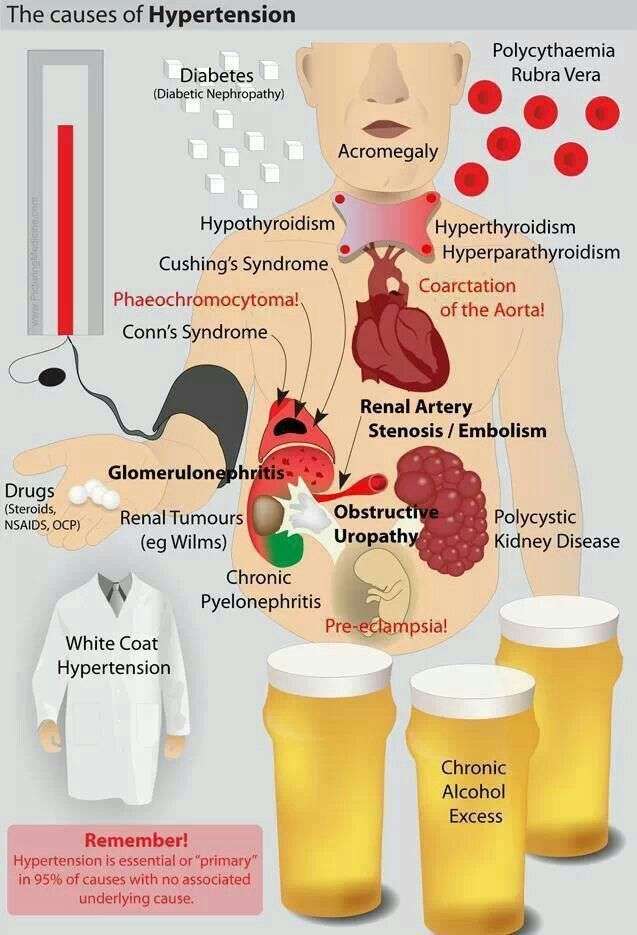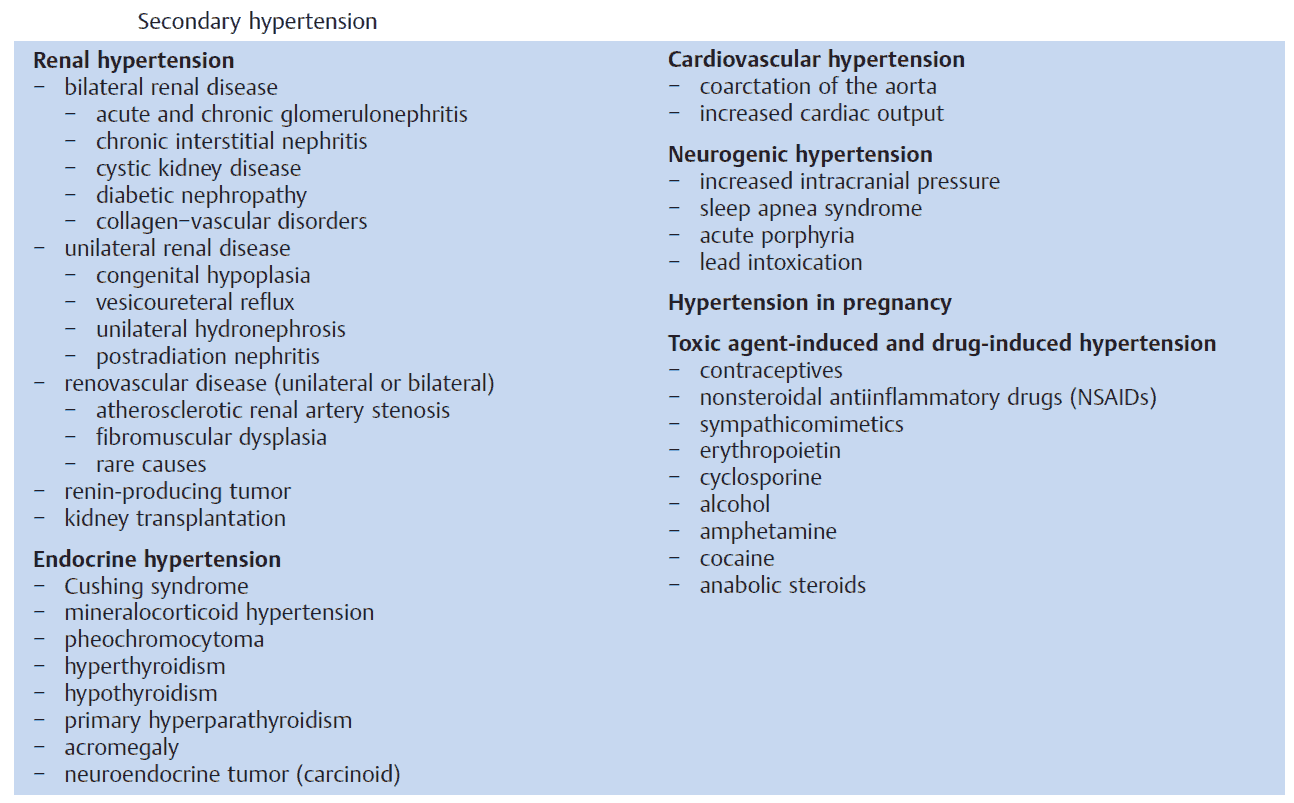 Secondary hypertension accounts for 5% of cases. Factors leading to secondary hypertension are:
