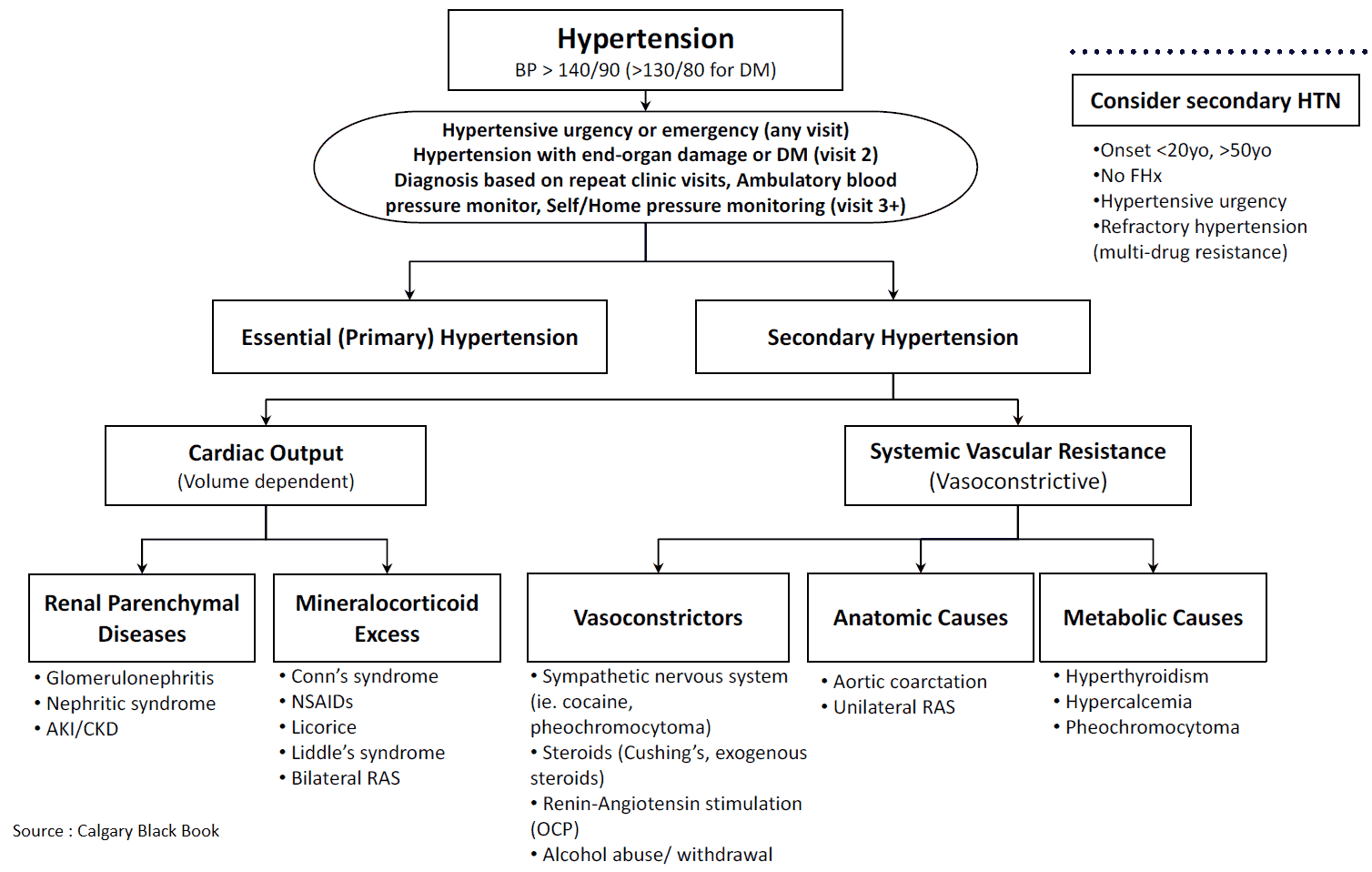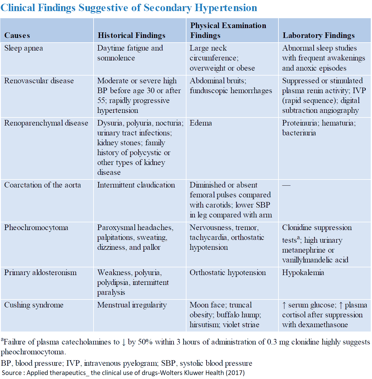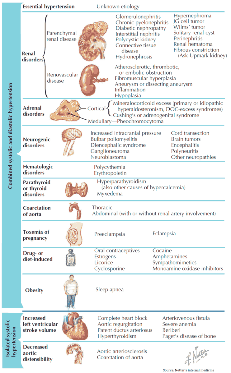 Secondary hypertension accounts for 5% of cases. Factors leading to secondary hypertension are: