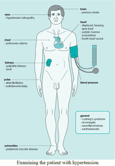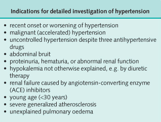 Patients with uncomplicated mild essential hypertension will have no associated clinical signs. However, when a patient is found to be hypertensive, one should search for evidence of complications or an underlying cause.