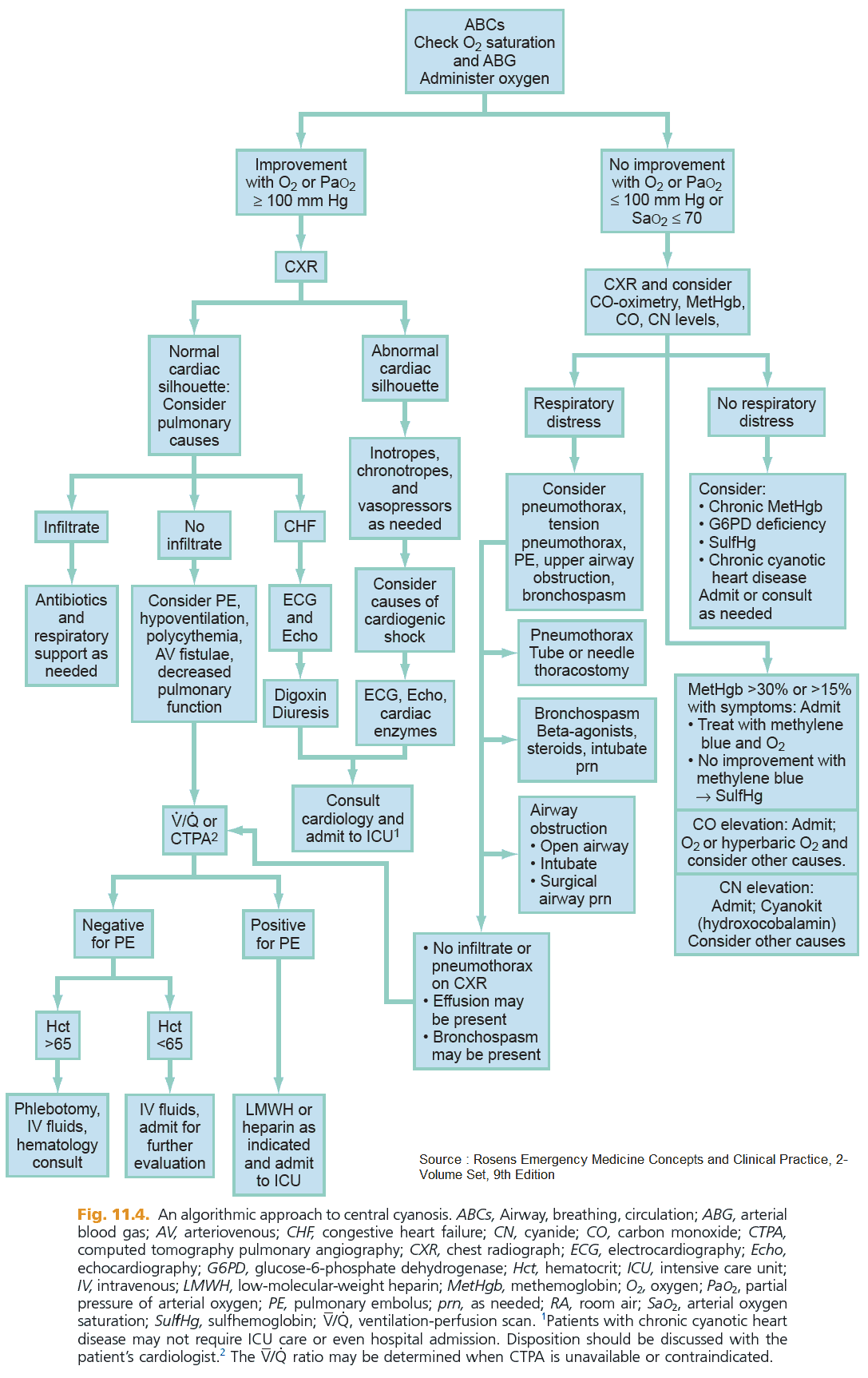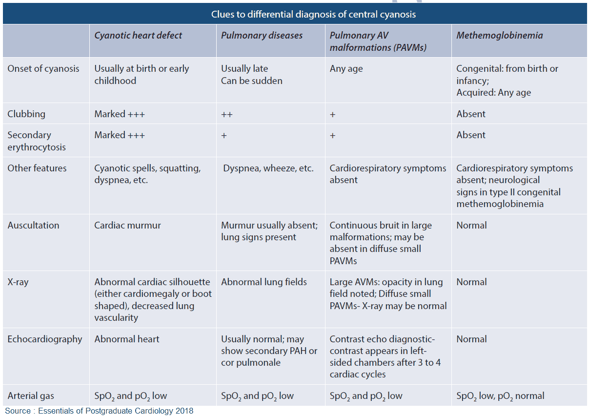Central cyanosis is a multisystem disorder. Thus, all clinical manifestations must be considered in the diagnostic evaluation: