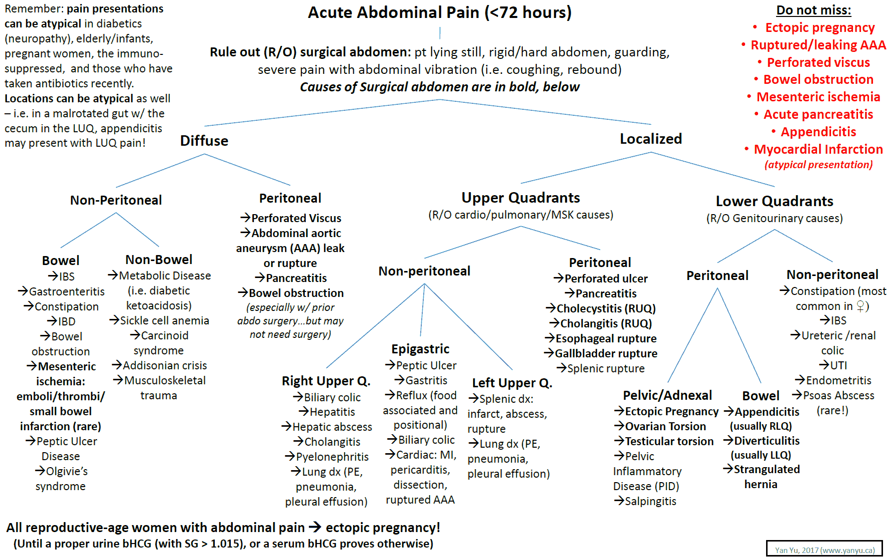 - Then, through a detailed history and physical, consider all the causes of abdominal pain