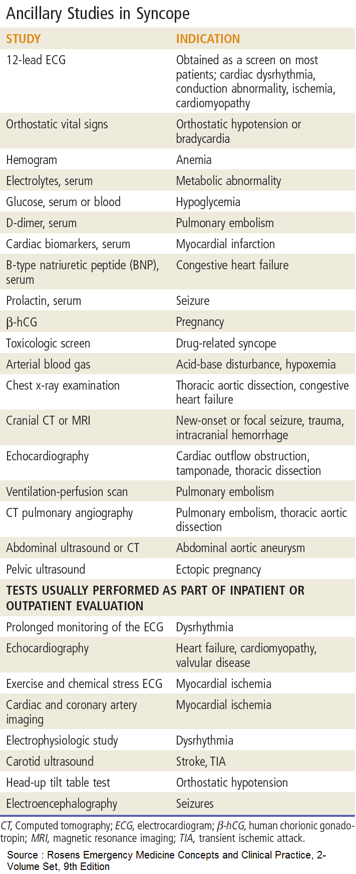 - Tilt table test: helps to determine vasovagal causes of syncope.