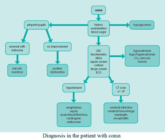 When a patient presents in coma, relatives or the PCP should be contacted to gain information regarding previous medical history, prodromal illness, known alcohol or drug abuse, and whether the events leading to the coma were witnessed by anyone.