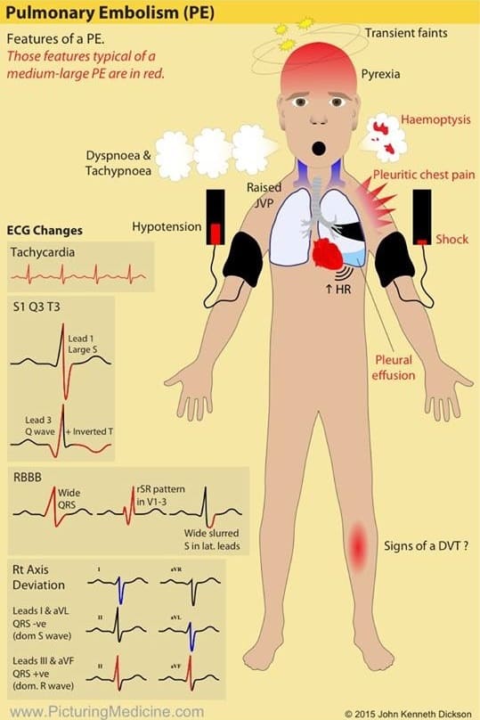 Risk factors for VTE must be considered as they may help the provider zero in on the diagnosis of PE.
