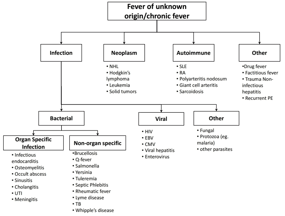 Causes (Etiology) of Fever of Unknown Origin (FUO)