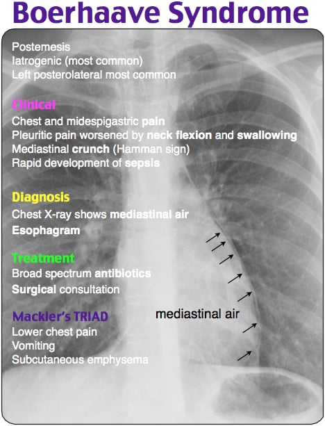 Classically, we associate Boerhaave syndrome with Mackler triad: